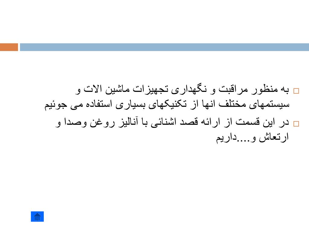 به منظور مراقبت و نگهداری تجهیزات ماشین الات و سیستمهای مختلف انها از تکنیکهای بسیاری استفاده می جوئیم • در این قسمت از ارائه قصد اشنائی با آنالیز روغن وصدا و ارتعاش و....داریم
