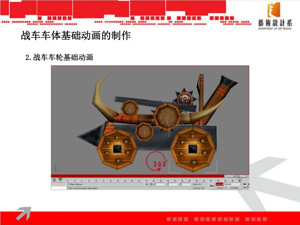 项目一 战车动画的设计与制作 项目描述 关键帧动画在游戏中的应用广泛,关键帧动画能将场景的描述进行丰富,使模型在场景中表现活泼生动。在游戏中关键帧动画占据着很重要的位置,游戏中,角色与场景以及角色和道具之间起到了联系互动的效果。如网络游戏“ World Of Warcraft” 场景中联系“奥格瑞玛”和“幽暗城”中的“地精飞空艇”、“荆齿城”和“藏宝海湾”之间运行的“航海船”,以及“雷霆崖”主城中房屋上不停旋转的风车等等。 此项目讲述关键帧动画的制作,通过对战车模型的车体投掷和战车行走动画的制作,使读者掌握关键帧动画的创建和熟练应用。. 制作思路与流程
