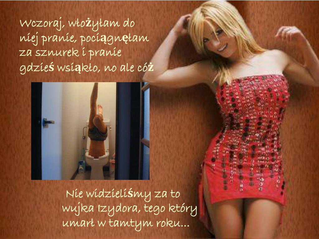 Wczoraj, włożyłam do niej pranie, pociągnęłam za sznurek i pranie gdzieś wsiąkło, no ale cóż Nie widzieliśmy za to wujka Izydora, tego który umarł w tamtym roku...