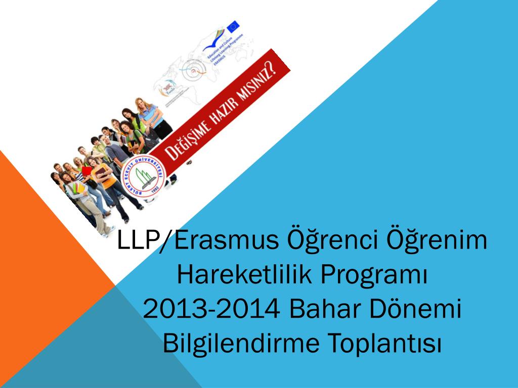LLP/ Erasmus Öğrenci Öğrenim Hareketlilik Programı 2013-2014 Bahar Dönemi Bilgilendirme Toplantısı. llp / erasmus programI hakkinda genel bilgi. Erasmus programı, yükseköğretim kurumlarının birbirleri ile işbirliği yapmalarını teşvik etmeye yönelik bir Avrupa Birliği programıdır.