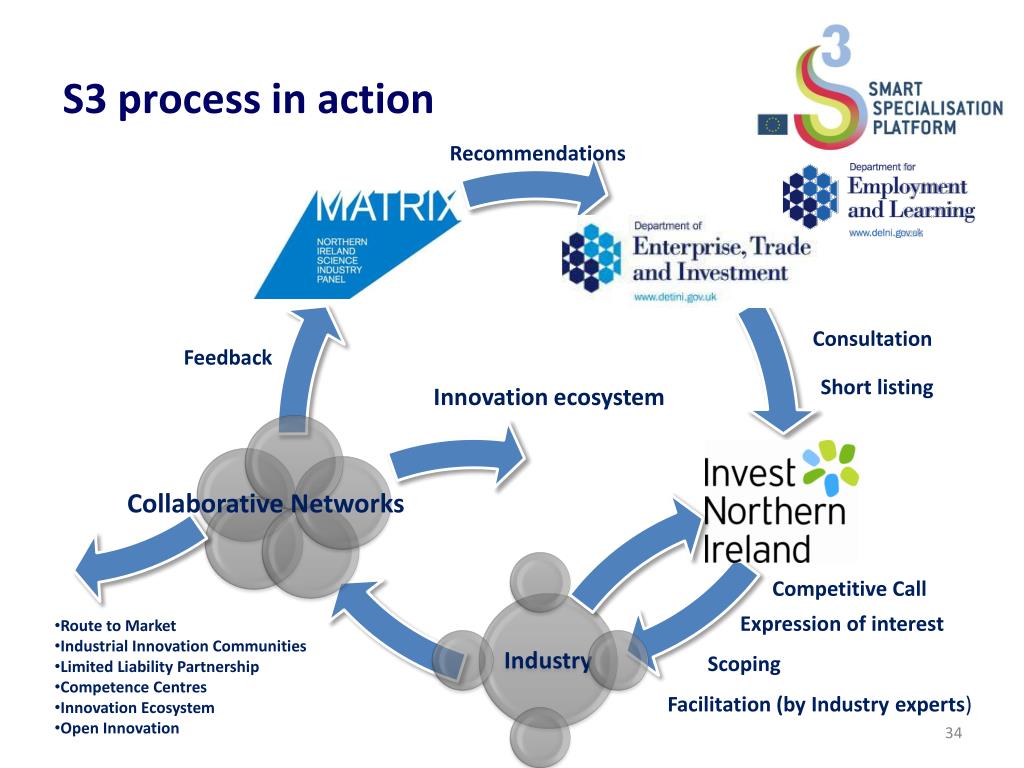 S3 process in action Recommendations Consultation Feedback Short listing Innovation ecosystem Collaborative Networks Competitive Call Expression of interest • Route to Market • Industrial Innovation Communities • Limited Liability Partnership • Competence Centres • Innovation Ecosystem • Open Innovation Scoping Facilitation (by Industry experts)