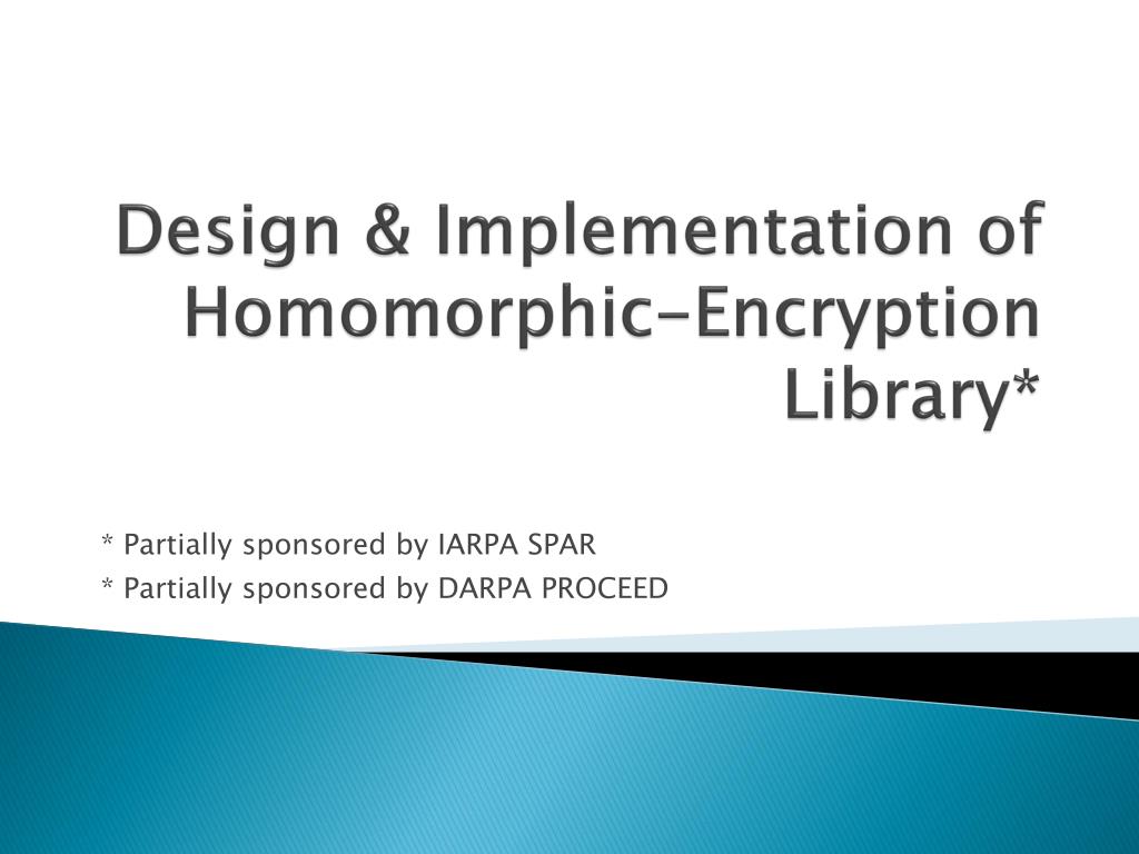 Design & Implementation of Homomorphic-Encryption Library* * Partially sponsored by IARPA SPAR * Partially sponsored by DARPA PROCEED