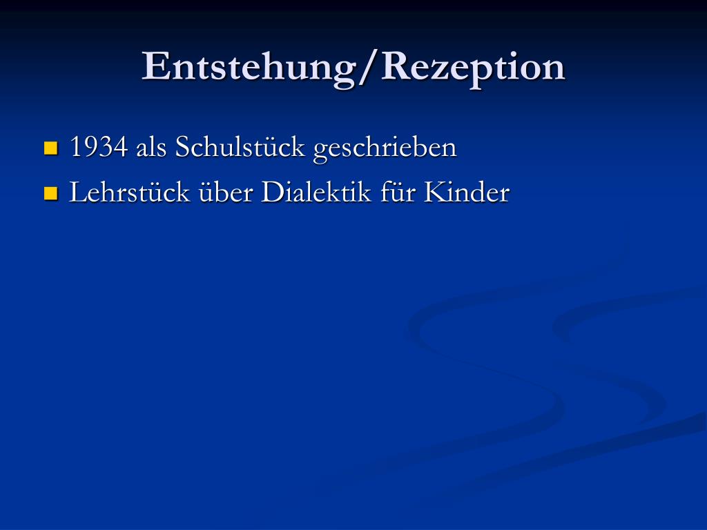 Entstehung/Rezeption • 1934 als Schulstück geschrieben • Lehrstück über Dialektik für Kinder