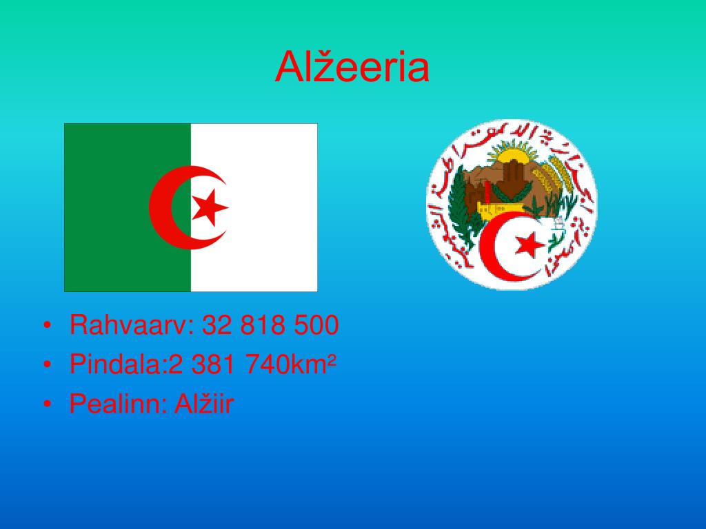Alžeeria • Rahvaarv: 32 818 500 • Pindala:2 381 740km² • Pealinn: Alžiir