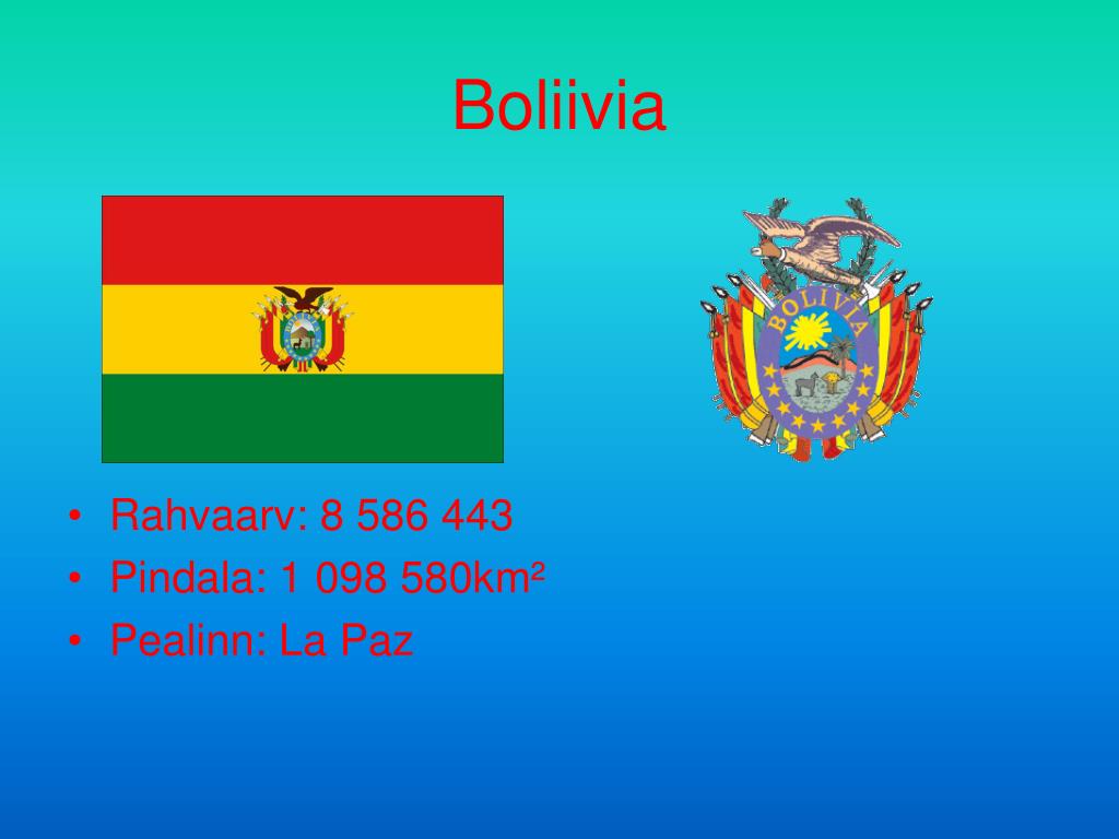 Boliivia • Rahvaarv: 8 586 443 • Pindala: 1 098 580km² • Pealinn: La Paz