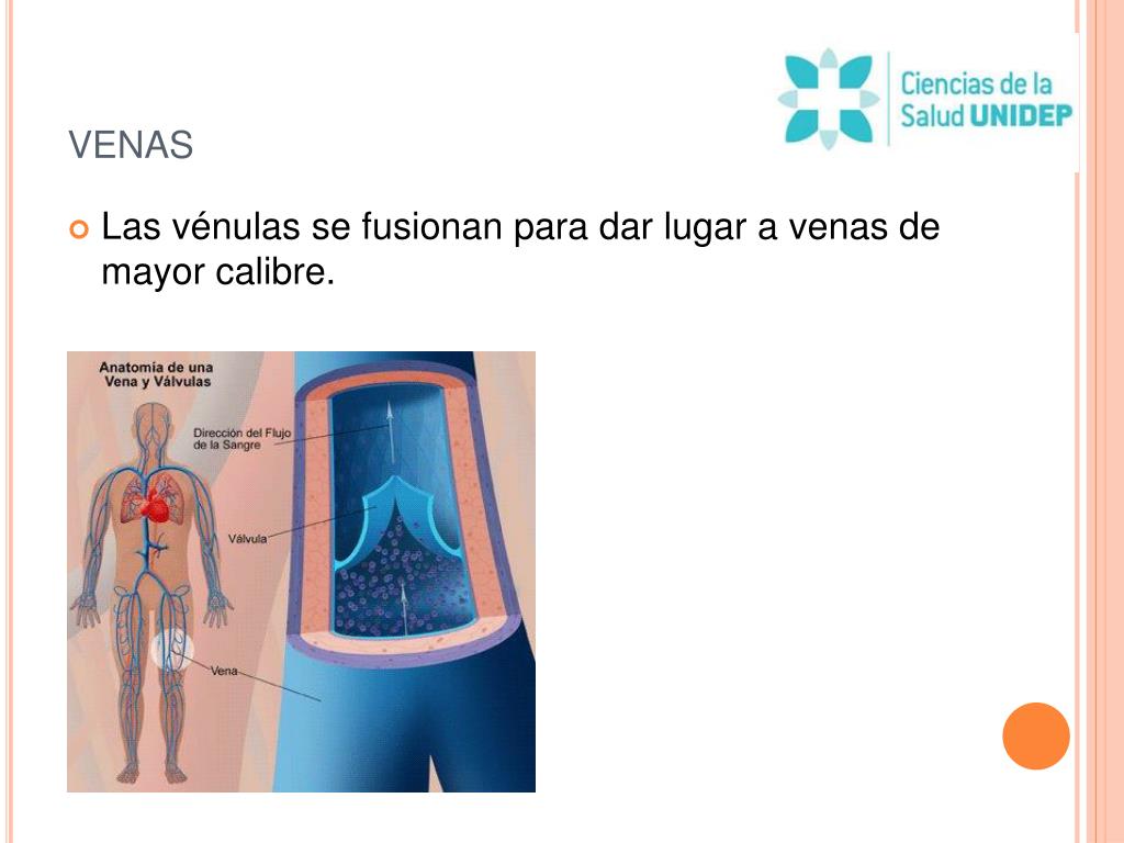 venas • Las vénulas se fusionan para dar lugar a venas de mayor calibre.