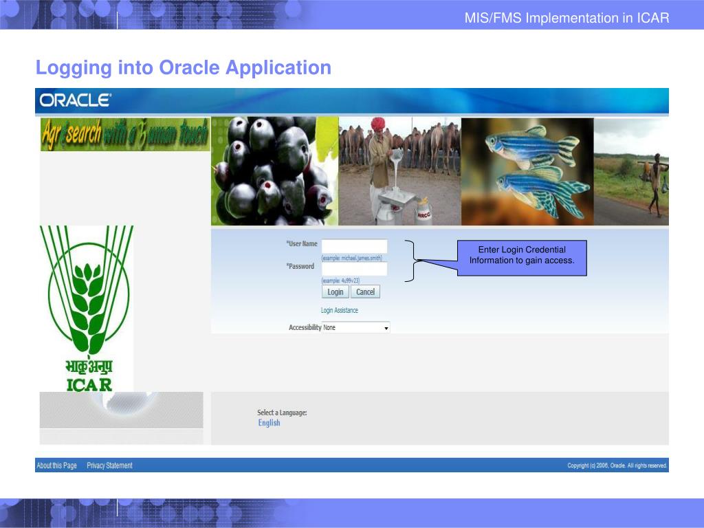 Logging into Oracle Application Enter Login Credential Information to gain access.