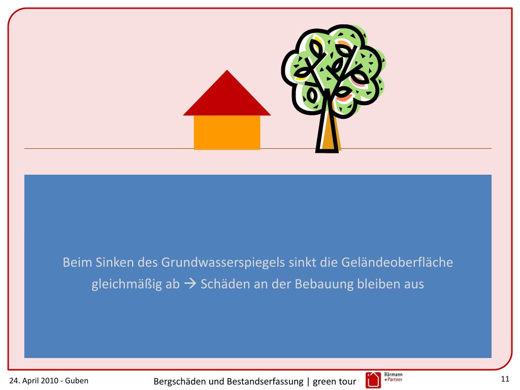 Beim Sinken des Grundwasserspiegels sinkt die Geländeoberfläche gleichmäßig ab Schäden an der Bebauung bleiben aus