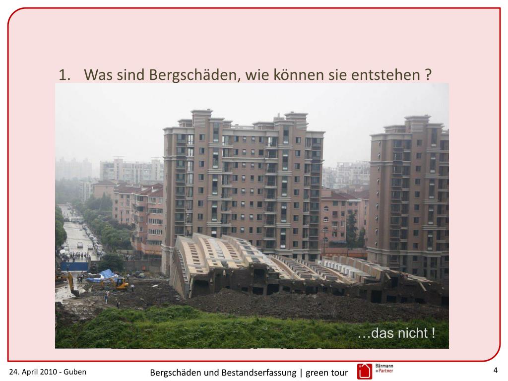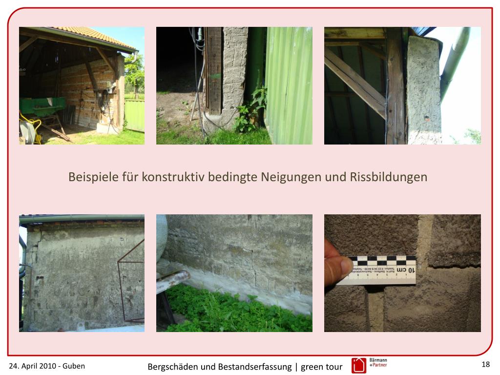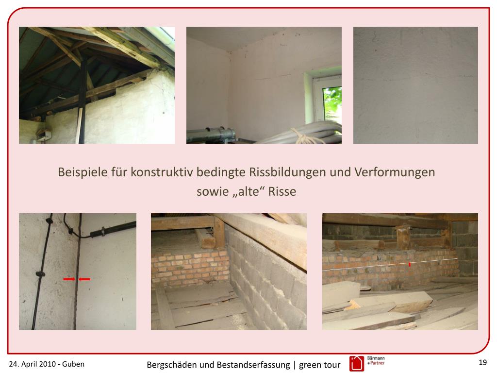 Bergschäden und Bestandserfassung. Ein Vortrag im Rahmen der „ green tour“ der Rosa-Luxemburg-Stiftung. Bärmann + Partner GbR Beratende Ingenieure Sachverständige. Planung und Bauüberwachung von kleinen privaten Anbauten bis zu großen öffentlichen Gebäuden,