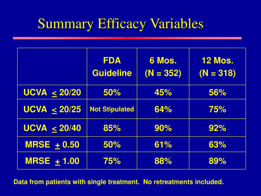 Summary Efficacy Variables Data from patients with single treatment. No retreatments included.