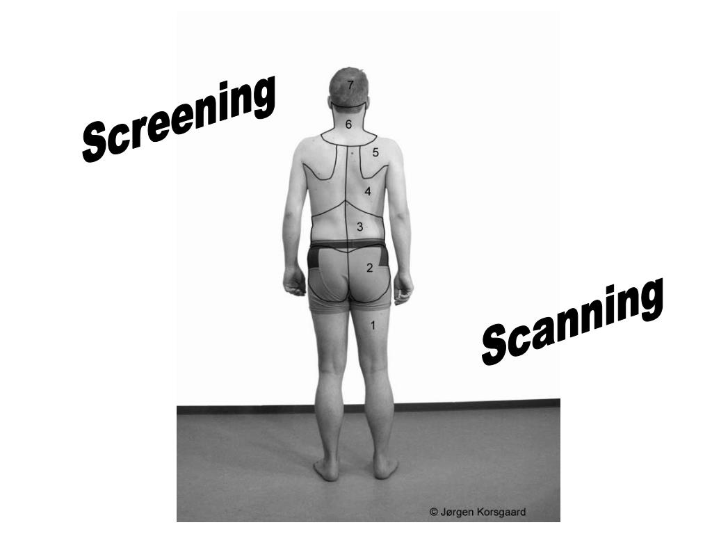 Manuel medicinsk screening • Columna • Bækken • Underekstremiteter • Overekstremiteter incl skulder • Nakke/hoved