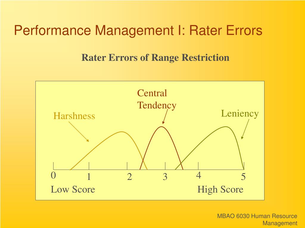 Central Tendency Leniency Harshness Performance Management I: Rater Errors Rater Errors of Range Restriction 0 4 1 2 3 5 Low Score High Score MBAO 6030 Human Resource Management