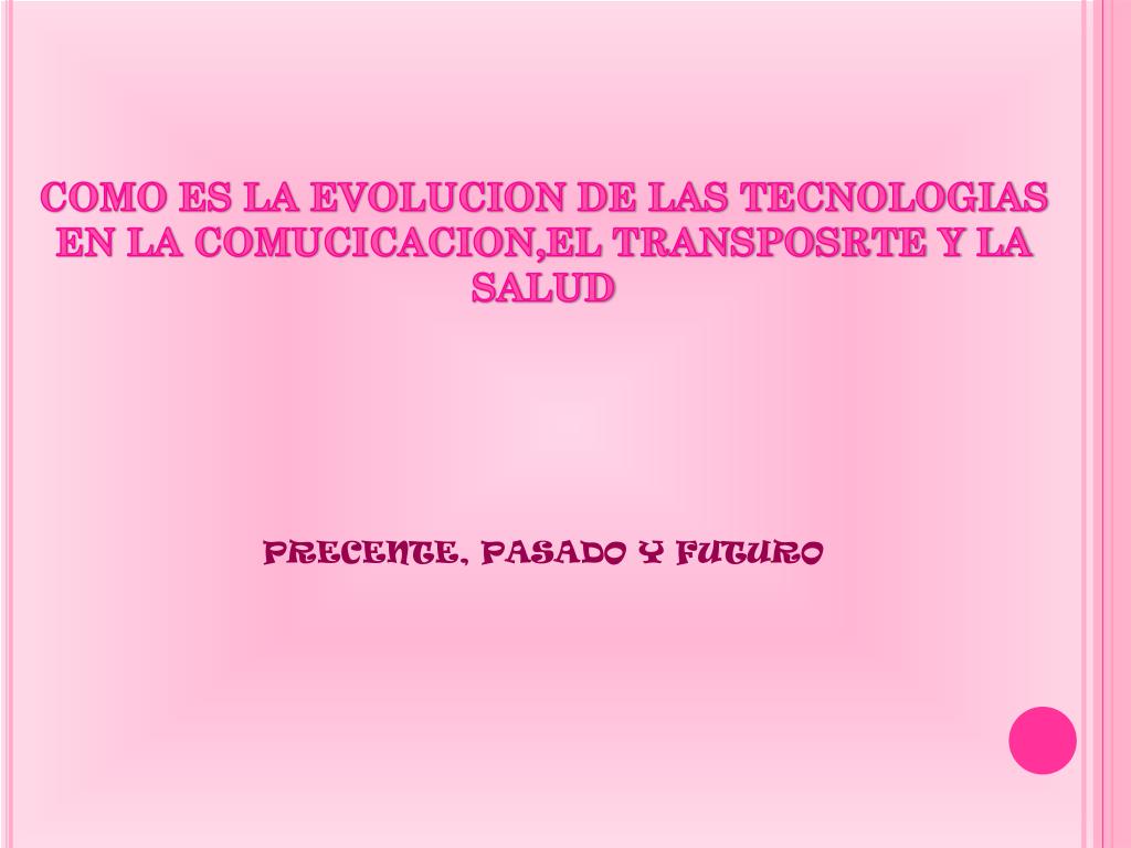 COMO ES LA EVOLUCION DE LAS TECNOLOGIAS EN LA COMUCICACION,EL TRANSPOSRTE Y LA SALUD PRECENTE, PASADO Y FUTURO