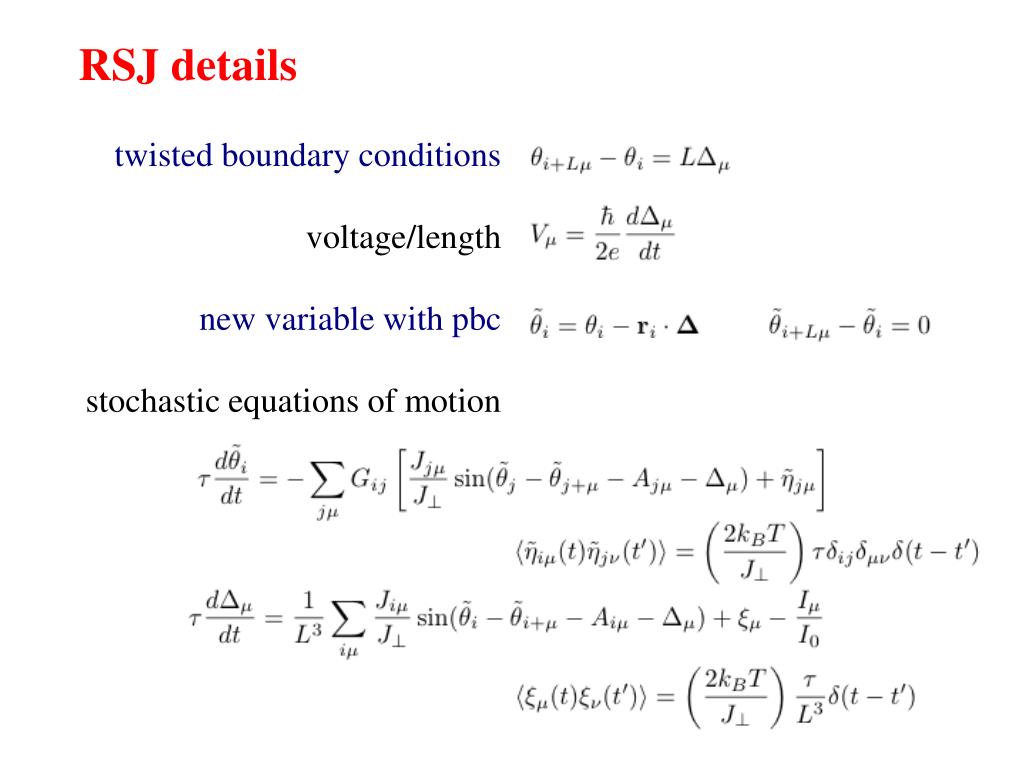 RSJ details twisted boundary conditions voltage/length new variable with pbc stochastic equations of motion