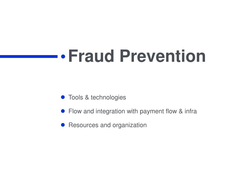 FraudPrevention • Tools & technologies • Flow and integrationwithpaymentflow & infra • Resources and organization
