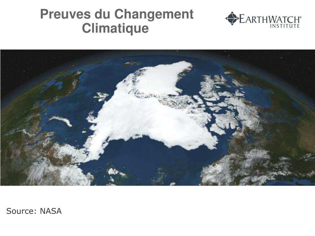 Preuves du Changement Climatique. Source: NASA. La Terre en équilibre. (Source: NASA illustrations par Robert Simmon .) . Changement climatique – une définition. Un changement de l’état du climat qui persiste sur une période prolongée, en général des décennies, ou plus: