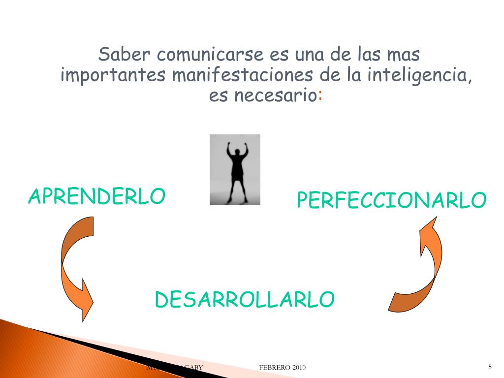 APRENDERLO PERFECCIONARLO Saber comunicarse es una de las mas importantes manifestaciones de la inteligencia, es necesario: DESARROLLARLO MTRA. ANAGABY FEBRERO 2010