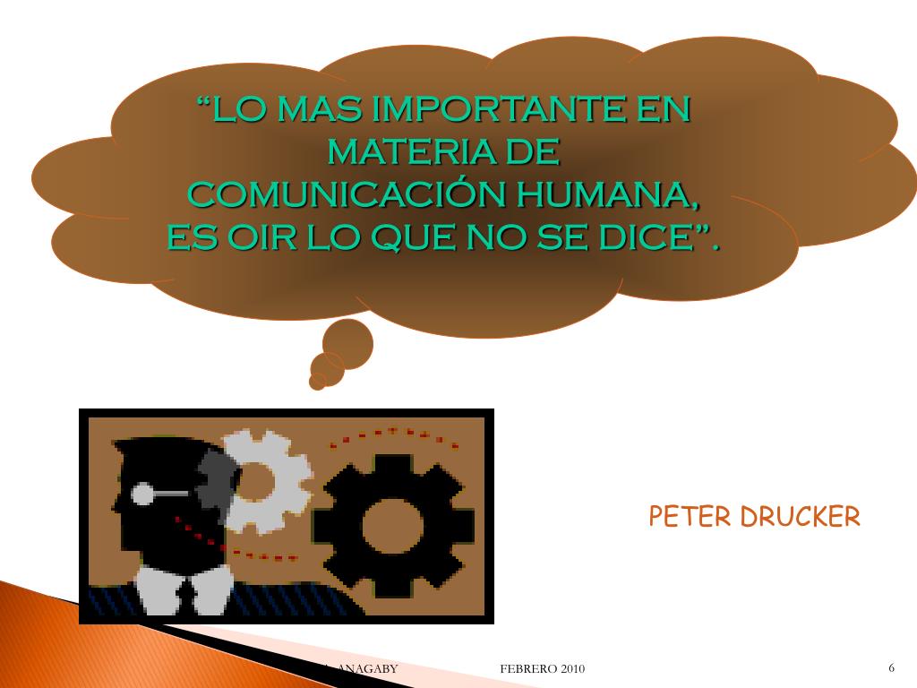 “LO MAS IMPORTANTE EN MATERIA DE COMUNICACIÓN HUMANA, ES OIR LO QUE NO SE DICE”. PETER DRUCKER MTRA. ANAGABY FEBRERO 2010