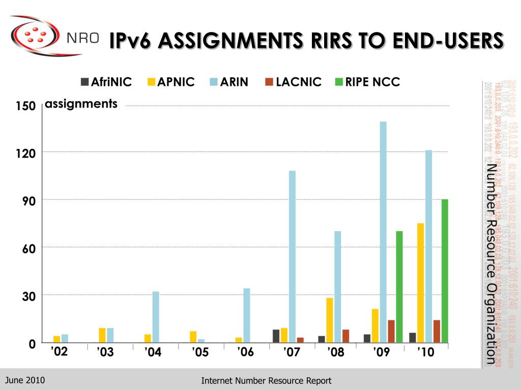 IPv6 ASSIGNMENTS RIRS TO END-USERS Internet Number Resource Report