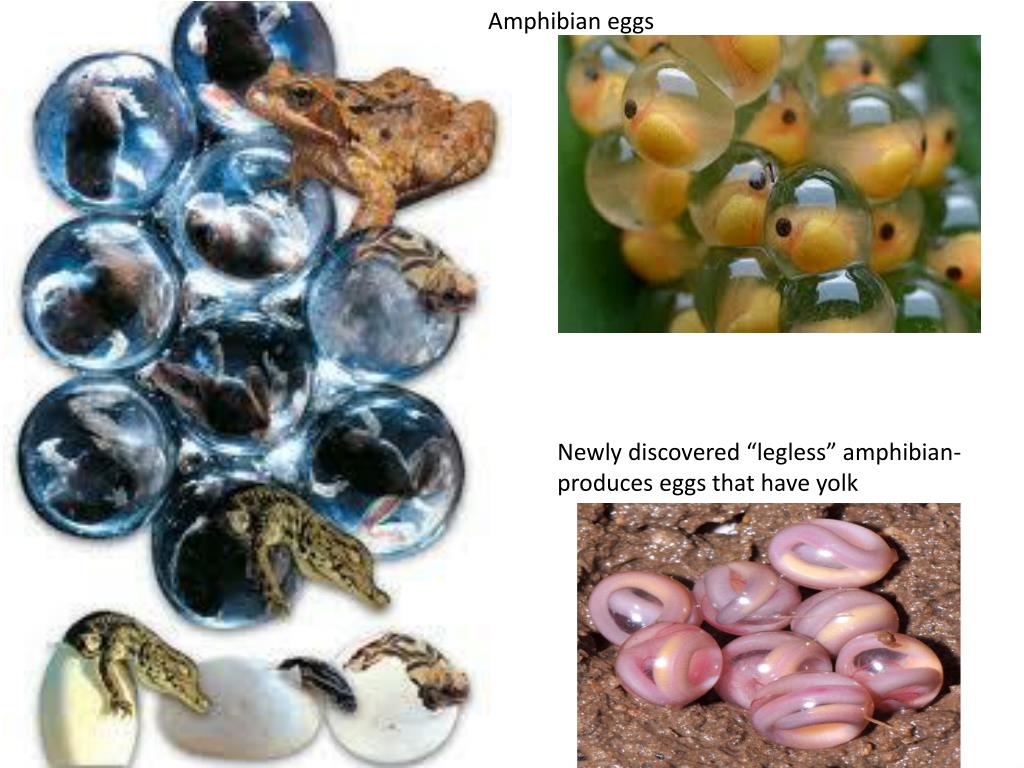 Amphibian eggs Newly discovered “legless” amphibian- produces eggs that have yolk