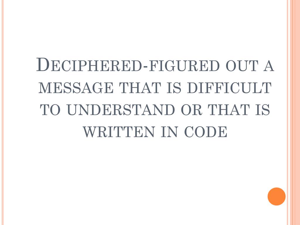 Deciphered-figured out a message that is difficult to understand or that is written in code