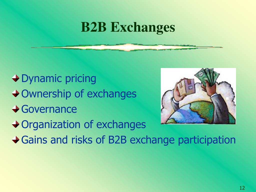 B2B Exchanges • Dynamic pricing • Ownership of exchanges • Governance • Organization of exchanges • Gains and risks of B2B exchange participation