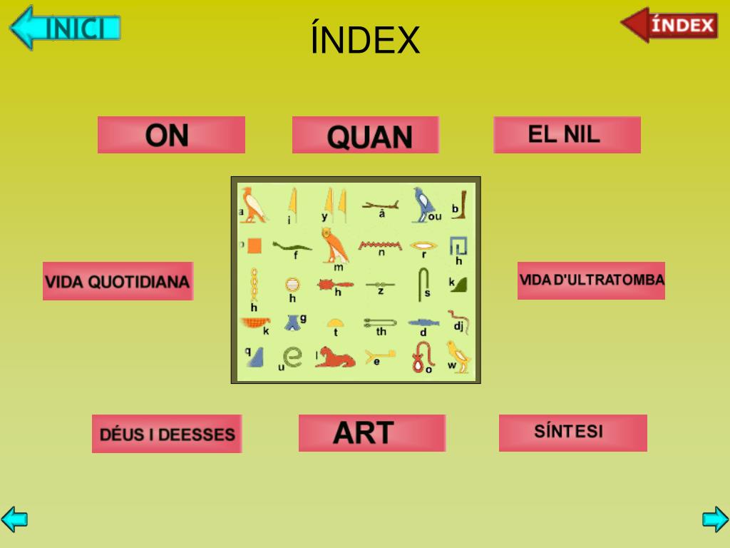 HISTÒRIES DE LA VORA DEL NIL. ÍNDEX. ON ?. Egipte és un desert travessat de sud a nord per un riu immens, el NIL, que li dóna vida. La situació geogràfica d’Egipte presenta dos avantatges: el desert l’aïlla dels enemics . el Nil té un règim de crescudes