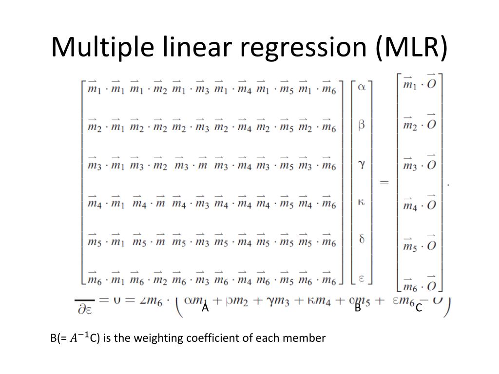 Multiple linear regression (MLR) A B C B(= C) is the weighting coefficient of each member