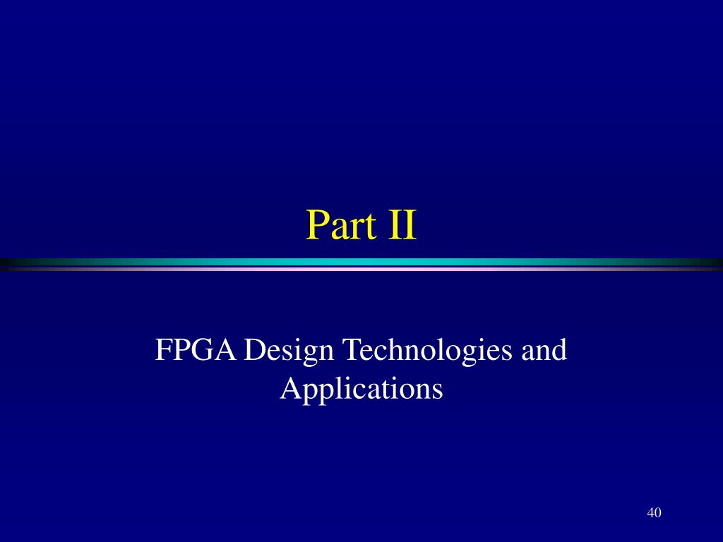 Emerging FPGA-based Applications • Low-volume production. • Urgent time-to-market competition. • Rapid prototyping. • Logic emulation. • Custom-computing hardware. • Reconfigurable computing.