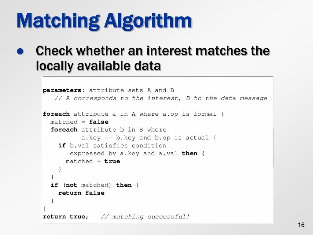 Content-Based Addressing • Recall: Paradigm change from id-centric to data-centric networking in WSN • Supported by content-based names/addresses • Do not described involved nodes (not known anyway), but the content itself the interaction is about • Classical option: Put a naming scheme on top of IP addresses • Done by some middleware systems