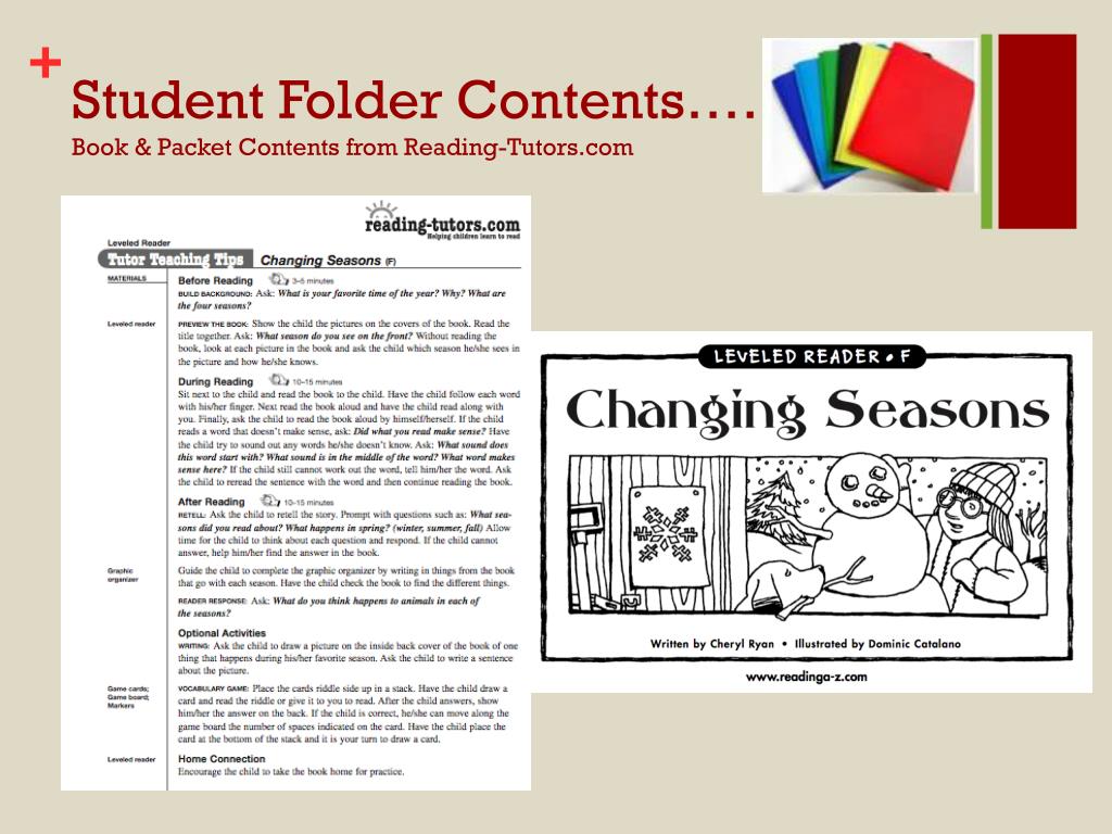 Student Folder Contents……Book & Packet Contents from Reading-Tutors.com