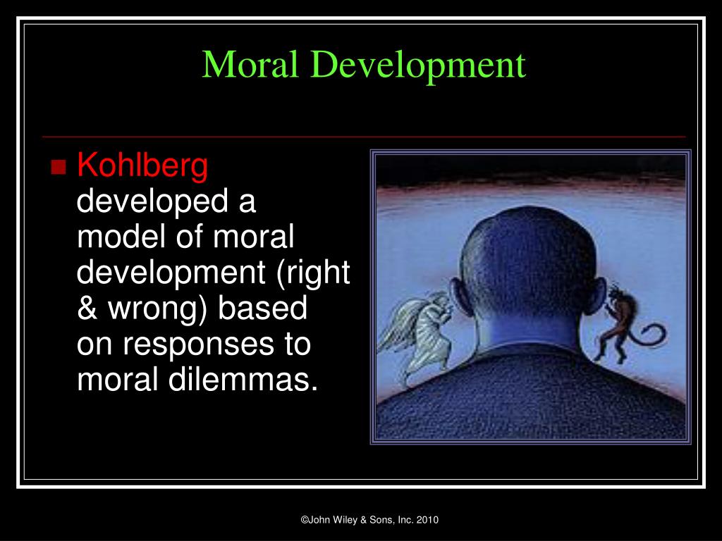 Moral Development • Kohlberg developed a model of moral development (right & wrong) based on responses to moral dilemmas. ©John Wiley & Sons, Inc. 2010