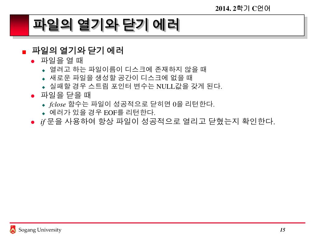 C 언어 ( STS2008 -04). 7. Text Input/Output. Files. File( 파일 ) 하나의 단위로 취급하는 external data( 외부 데이터 ) 의 단위 C 에서 , 파일 (file) 은 디스크 파일에서 터미널 또는 프린터에 이르기 까지 어떤 것도 될 수 있음. Streams. Stream( 스트림 ) 데이터의 source 와 destination 은 file 이지만 , data 는 스트림 (stream) 을 통해 입력되고 스트림을 통해 출력된다. Streams.