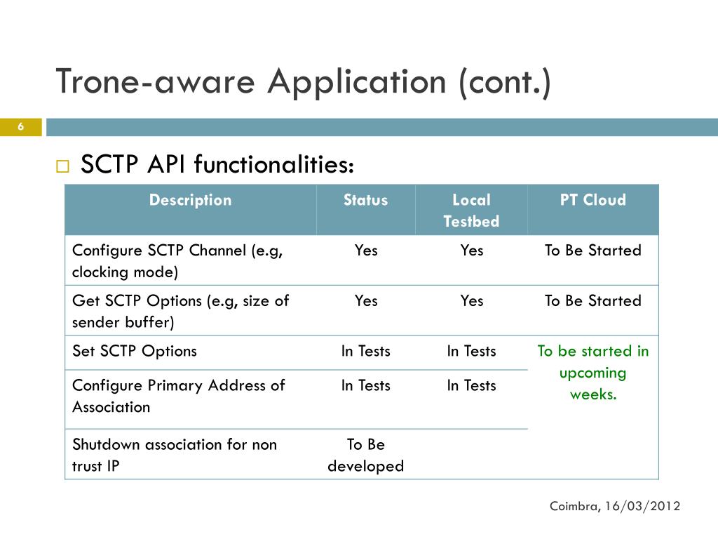 Trone-aware Application (cont.) • SCTP API functionalities: