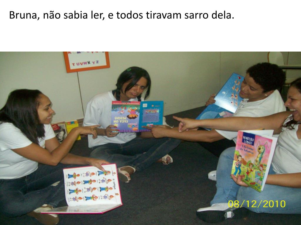 FOTO NOVELA. INCENTIVO A LEITURA. Bruna, não sabia ler, e todos tiravam sarro dela. A professora muito chateada com aquela situação deu uma bela liçao de moral para as colegas de Bruna. A situação mudou, ao invés de ficarem fazendo chacotas da Bruna, decidiram ajuda-lá.