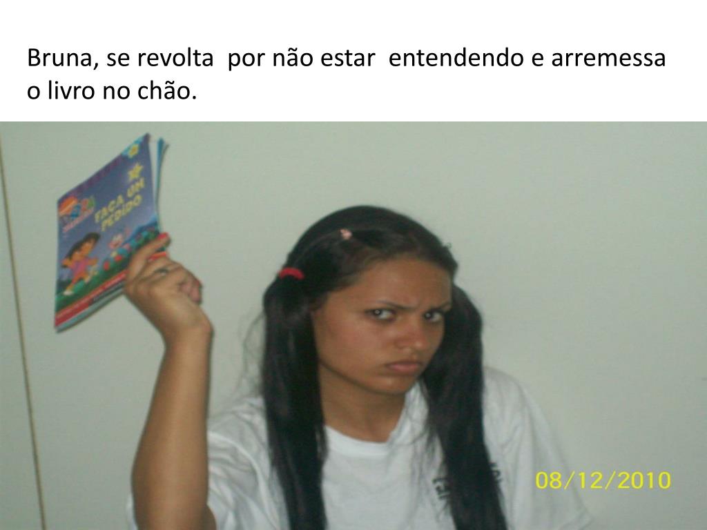 Bruna, se revolta por não estar entendendo e arremessa o livro no chão.