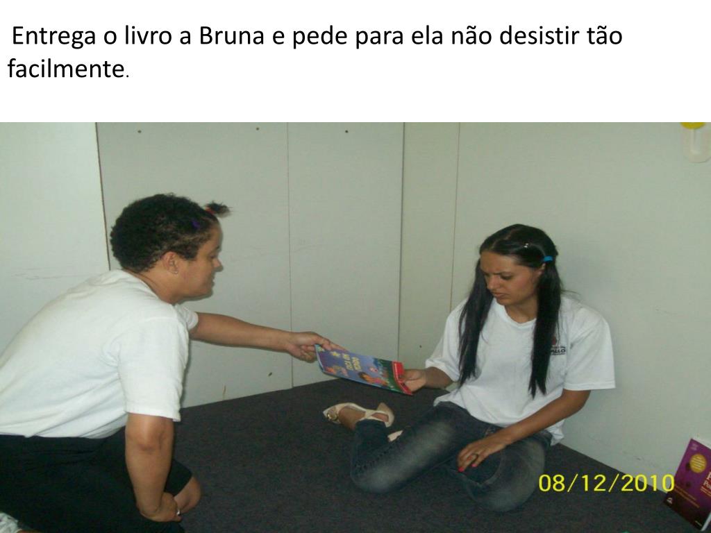 Entrega o livro a Bruna e pede para ela não desistir tão facilmente.
