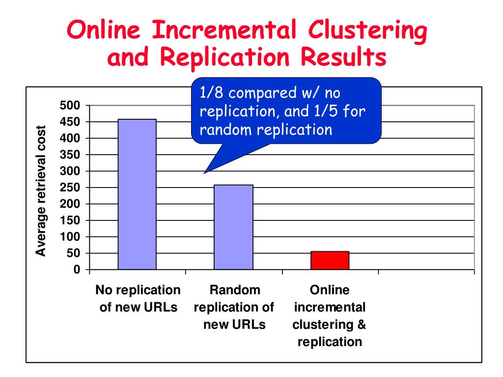 Online Incremental Clustering and Replication Results 1/8 compared w/ no replication, and 1/5 for random replication