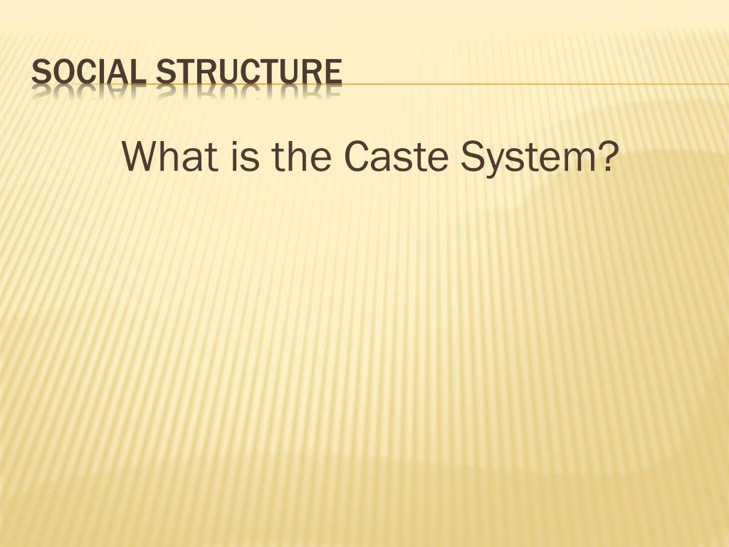 What is the Caste System? A: The Caste System in India is how people are classified and it is believed that one can change their situation based on how they lead their previous life. Social Structure