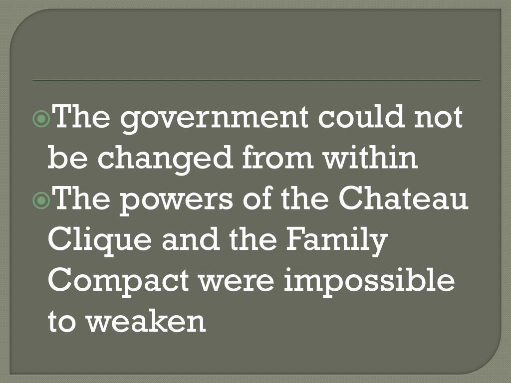 The government could not be changed from within The powers of the Chateau Clique and the Family Compact were impossible to weaken
