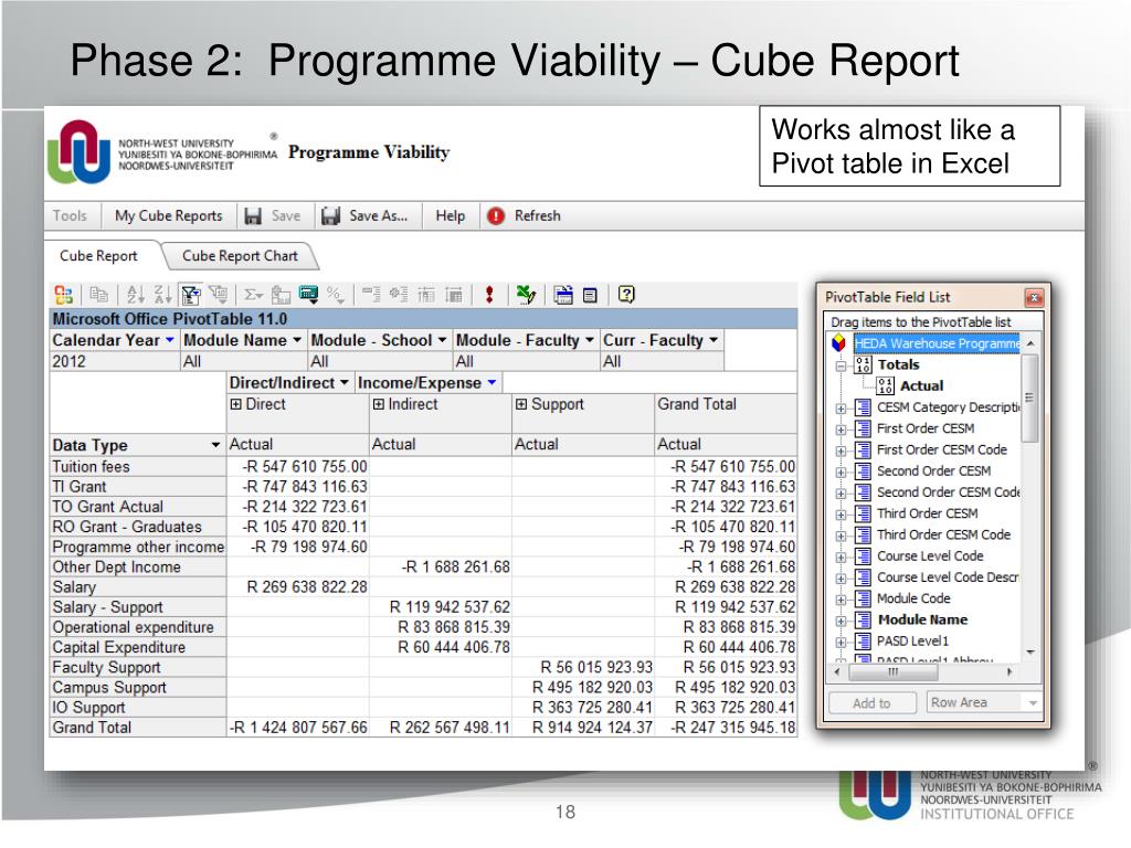 Phase 2: ProgrammeViability – Cube Report Works almost like a Pivot table in Excel