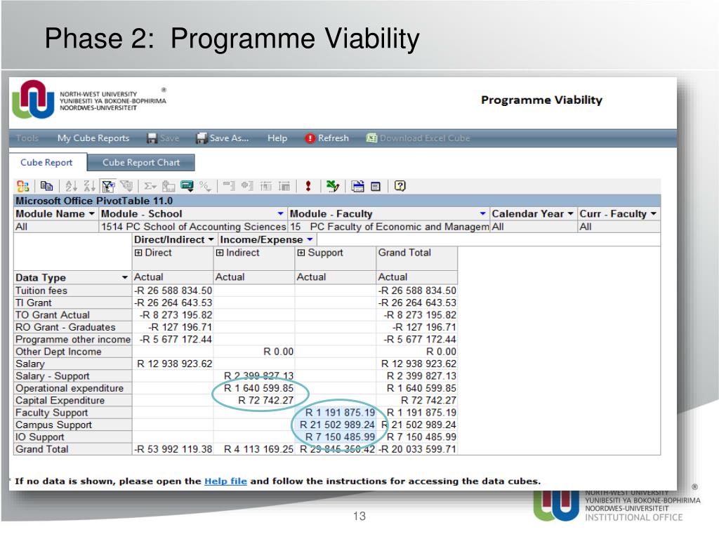 Phase 2: ProgrammeViability – Cube Report Link demonstrated: If you ungroup more rows, change filters etc.