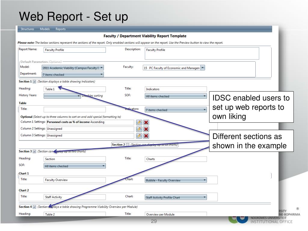 Web Report - Set up IDSC enabled users to set up web reports to own liking Different sections as shown in the example