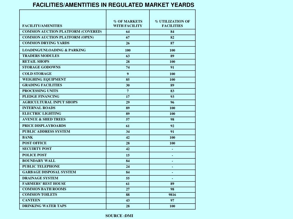 FACILITIES/AMENTITIES IN REGULATED MARKET YEARDS SOURCE :DMI