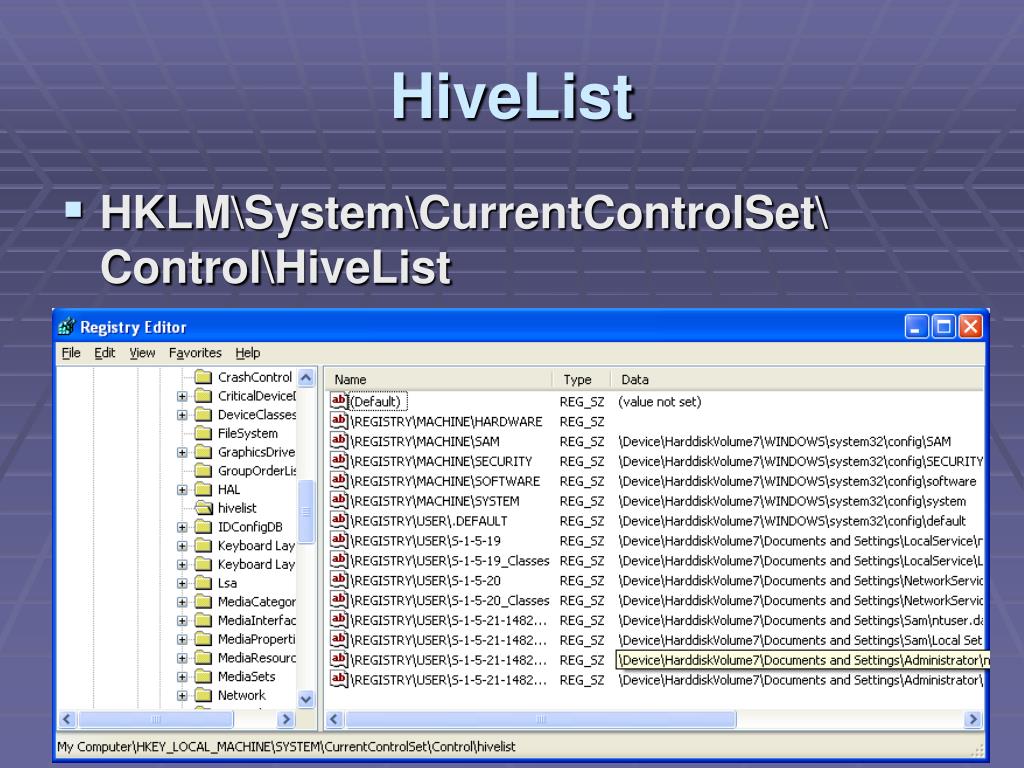 HiveList • HKLM\System\CurrentControlSet\Control\HiveList