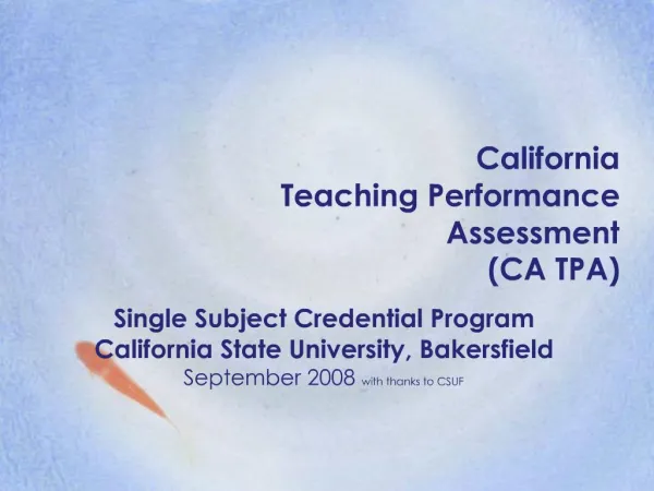 1. CaliforniaTeaching Performance Assessment (CA TPA) Single Subject Credential Program