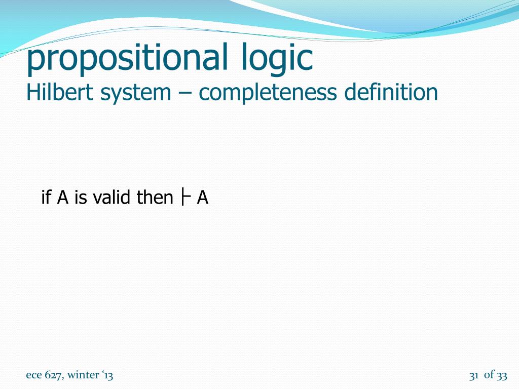 propositional logicHilbert system – decidability definition there is a mechanical procedure which can decide for any A whether or not A