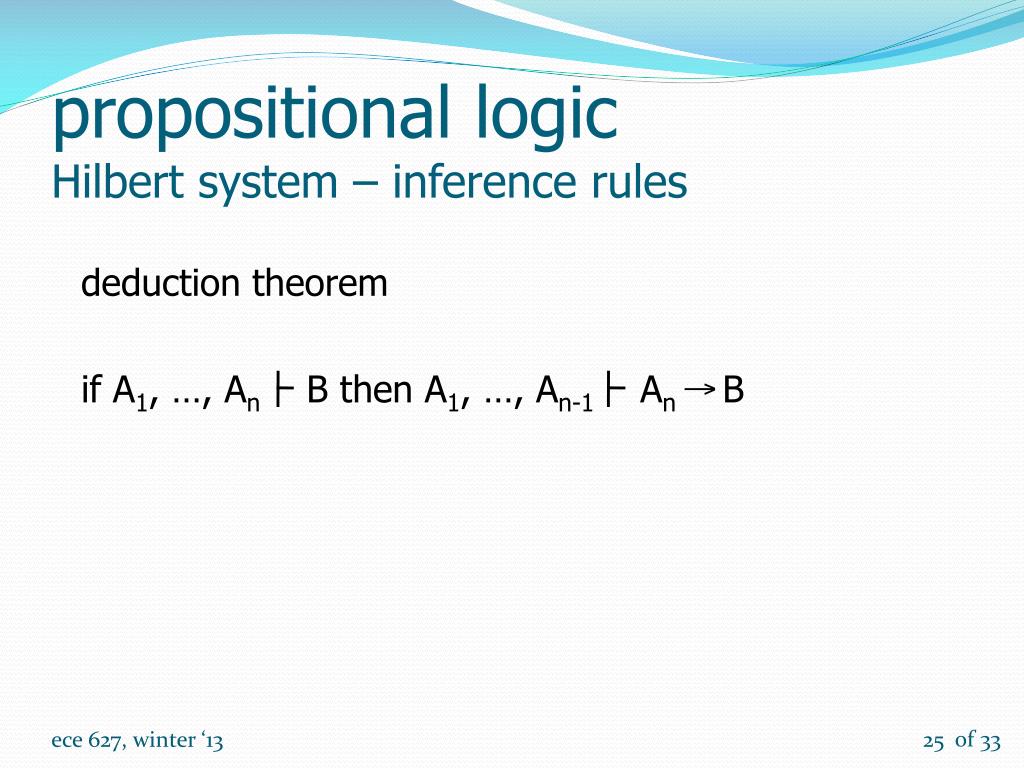propositional logicHilbert system – inference rules deduction theorem if A1, …, An B then A1, …, An-1 An B