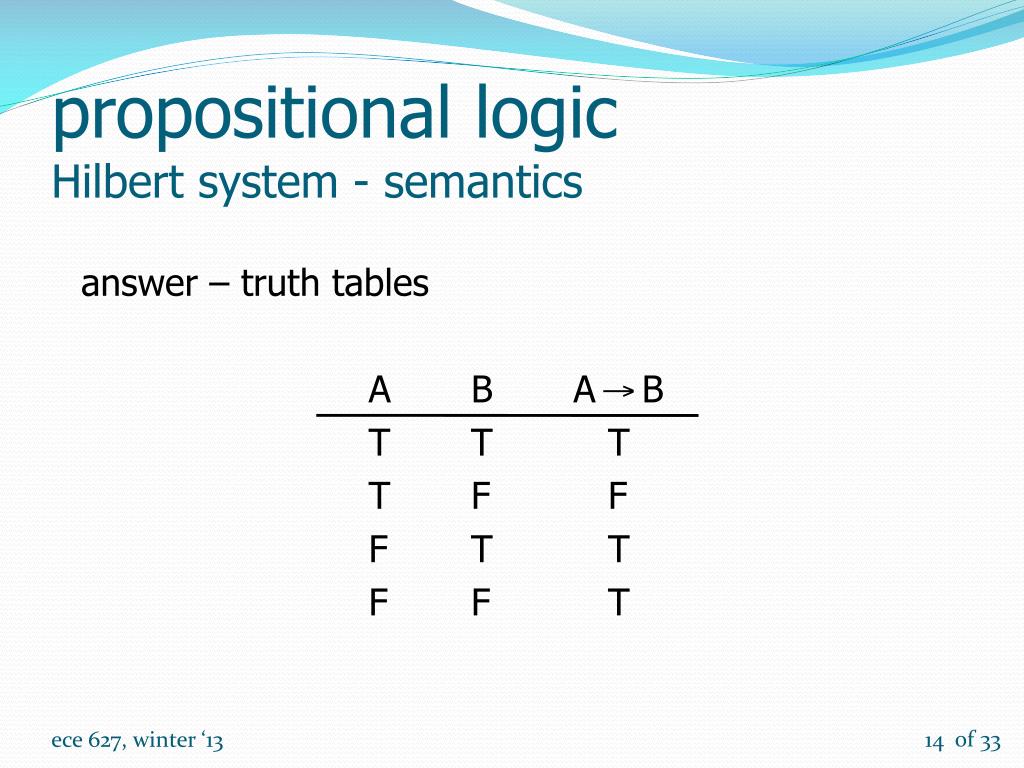 propositional logicHilbert system - semantics answer – truth tables A B A B T T T T F F F T T F F T
