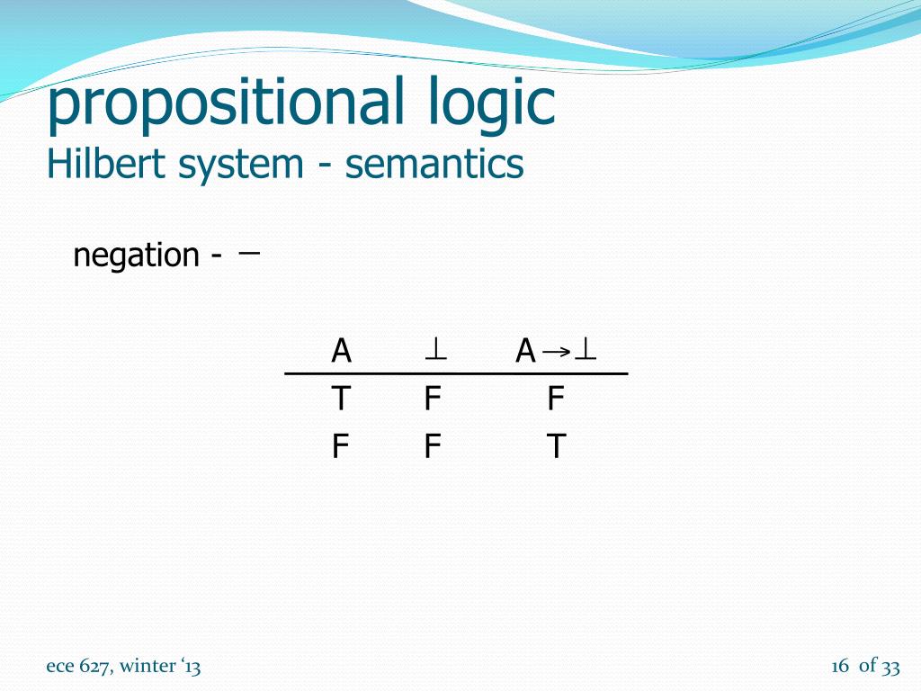 propositional logicHilbert system - semantics negation - A A T F F F F T